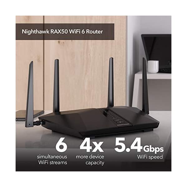 The nighthawk RAX50 wifi 6 router provides about 4 times more network capacity compared to WIFI 5. Security-wise, it is powered by the worlds leading cybersecurity powered by bit defender. So you can easily surf the internet, and stream uploads without worrying about malware or spam attacks. It even supports Google Voice assistant and ALEXA for an easy interface and futuristic console.